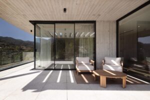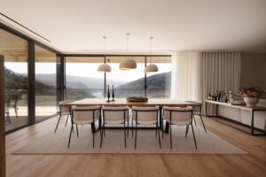 A arquitetura privilegia a integração com a paisagem, que se revela através de amplas superfícies envidraçadas — uma verdadeira moldura para vistas de cortar a respiração. O ambiente é fluido, luminoso e minimalista, mas nunca frio: cada espaço foi desenhado para convidar ao relaxamento e à convivência.