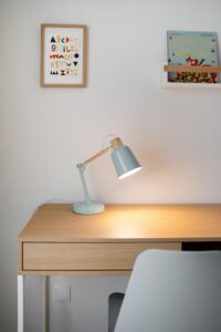 Cada detalhe deste quarto foi pensado para trazer conforto, funcionalidade e alegria – do cantinho de estudos iluminado à cama que convida para bons sonhos.
