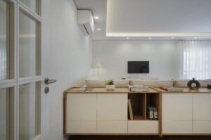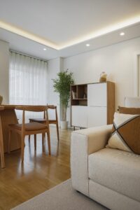 O Desafio foi criar um ambiente de tranquilidade e conforto para um apartamento em Telheiras. Para o Hall de entrada, optou-se pela inclusão de mobiliário em madeira, plantas e espelhos de forma orgânica, contrapondo serenidade com alguma descontração. A área de sala de estar e jantar integrada, caracterizou-se por uma decoração moderna e minimalista. Um espaço pensado para transmitir calma, harmonia e funcionalidade através de tons neutros, madeira natural e luz suave, transmitindo uma sensação de conforto e sofisticação, resultando num espaço equilibrado, onde o design contemporâneo encontra o conforto de um lar.