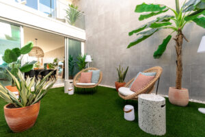 Em busca de um retiro para praticar golf e desfrutar o solarengo Algarve, este casal descobriu um lugar ideal para escapar à rotina em Londres. Queriam que a casa respirasse a verão, e as cores honrassem o clima que rodeia esta dourada região de Portugal. Moderna e confortável, faziam parte dos adjectivos do briefing. Mergulhámos nas cores do pôr-do-sol, nos tons de areia, nos azuis das noites estreladas, nas folhas da mãe natureza e na madeira que aquece toda esta paleta. Sublinhada por pormenores a preto que elegantemente elevam o ambiente. Resultado foi mais que aprovado por todos nós. Foi um processo que levou o seu tempo mas que sem dúvida fez a espera valer a pena!