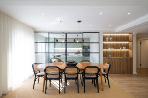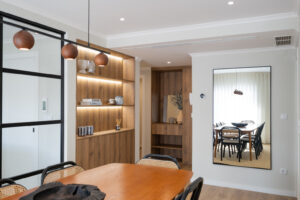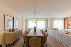 Este projeto representa uma intervenção onde a ISM/ transformou um apartamento convencional num espaço contemporâneo, funcional e harmonioso. O projeto focou-se na otimização dos percursos e na integração visual entre sala, sala de jantar e escritório. A paleta de cores e padrões, o uso criterioso de materiais e os elementos decorativos criam uma atmosfera leve, elegante e atual, alinhada com a filosofia estética e sensorial da ISM/.