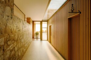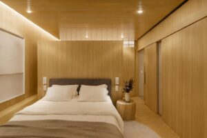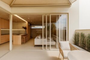 Situada junto ao mar em Lavra, esta moradia compacta foi pensada para proporcionar máximo conforto e sofisticação com uma linguagem natural e funcional. O projeto de interiores privilegia a continuidade visual entre os ambientes, com soluções de carpintaria sob medida, materiais claros e iluminação indireta que reforçam a sensação de amplitude. A zona social conecta-se fluida e generosamente com os espaços exteriores, que foram tratados como extensões da casa — com esplanada, zona de refeições, barbecue e elementos naturais que reforçam o carácter praiano e descontraído da proposta. Uma casa pequena, mas surpreendentemente completa.