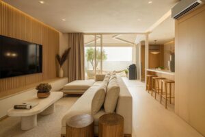Neste projeto de interiores, a From Scratch Interiors criou um refúgio contemporâneo e acolhedor para um casal internacional. Com enfoque na funcionalidade e no conforto, o apartamento foi transformado através de mobiliário feito por medida, iluminação personalizada e uma paleta de tons suaves combinada com materiais naturais. A intervenção respeitou os acabamentos originais dos revestimentos, valorizando o existente com novos elementos de design, peças soltas cuidadosamente escolhidas e soluções que ligam harmoniosamente os espaços interiores e exteriores. O resultado é um lar elegante, sereno e intemporal.