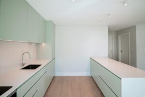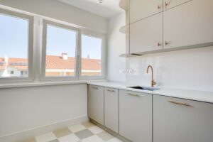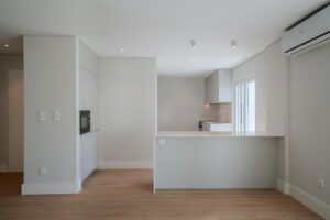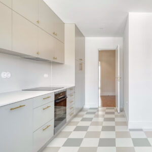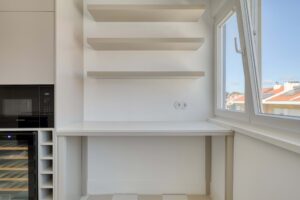Situado na zona nobre de Santo Amaro de Oeiras, este apartamento T2 foi totalmente remodelado, tendo como base o conceito moderno/funcional, valorizando a luminosidade e a fluidez entre os espaços. A renovação incluiu não só a atualização completa das eletricidades, canalizações e sistema de ar condicionado, como também um novo projeto de iluminação, cozinha, armários dos quartos e instalação sanitária, bem como a reformulação de vãos para potenciar a entrada de luz natural.