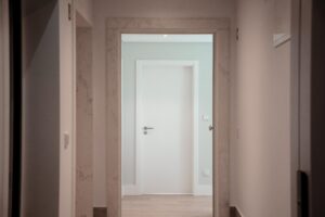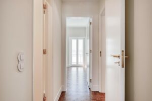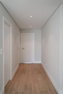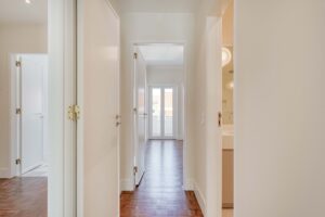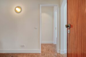 Foram mantidos o pavimento original em tacos, as portas e respectivas aduelas, pela sua qualidade e valor histórico, conferindo carácter e autenticidade.