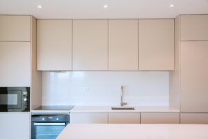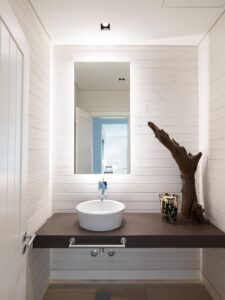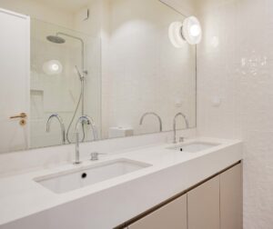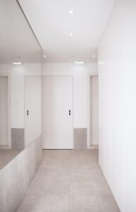 A escolha de cores e texturas foi pensada para agradar a diferentes estilos, criando espaços confortáveis, elegantes e consensuais. Todas as carpintarias foram desenhadas e produzidas à medida, valorizando a autenticidade e o saber-fazer português. Neste projeto, os materiais “made in Portugal” assumem um papel de destaque, reforçando a identidade e a qualidade do resultado final.