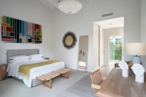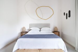 O mobiliário de linhas despojadas convive com peças de arte e design português, selecionadas numa curadoria cuidada que celebra o talento nacional. Cada detalhe foi pensado para criar ambientes luminosos, equilibrados e acolhedores.