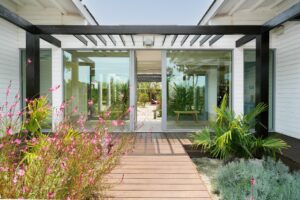 A paleta de tons neutros e a leveza das formas reforçam a sensação de harmonia, enquanto a luz natural, presente em todas as divisões, sublinha a relação constante entre interior e exterior.