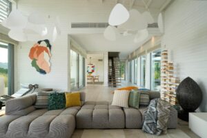 O resultado é uma casa descontraída e contemporânea, onde o conforto e a elegância se unem de forma natural — um refúgio sereno junto ao mar, intemporal e cheio de personalidade.