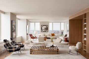 A sua paixão por mobiliário do meio do século é evidente e está muito bem ajustada à atualidade através de outros elementos como, por exemplo, o tom de paredes. Cores tendência como o verde ou o preto fazem lembrar que estamos, na verdade, no século XXI. E quão impressionante é a mobília em teka encostada à parede preta?