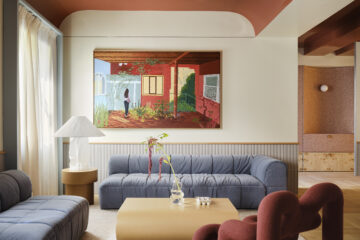 A sala tem, maioritariamente, tons neutros, quer na marcenaria executada por medida, que nos tecidos e paredes. O elemento onde os arquitetos e designers Guilherme Galvão e Douglas Alexandre mais ousaram foi no sofá, com um estofo azul escuro. A ideia foi transmitir um mood ‘clean sofisticado’, sem grandes exageros.