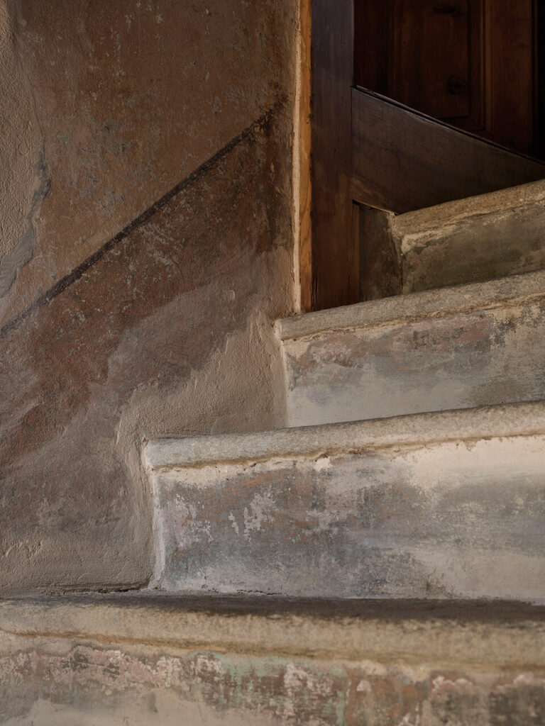 A escada, íngreme e imponente, ganhou destaque: tornou-se o elemento central da narrativa arquitetónica, ligando os pisos e preservando o seu caráter original. As novas aberturas, criadas para permitir a passagem da luz entre a sala e a cozinha, deram-lhe protagonismo e profundidade.