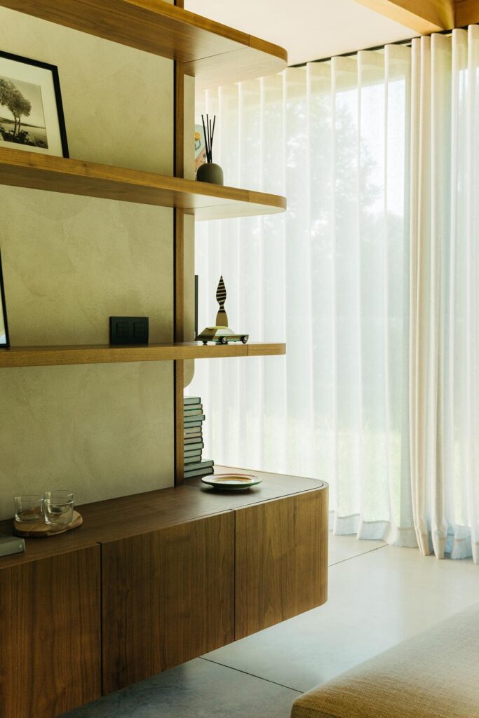 Segundo contam os autores do projeto, a casa foi pensada para envolver os cinco sentidos: a textura rugosa da pedra em contraste com a suavidade do estuque, o calor visual dos tons de madeira, o conforto emocional das imperfeições assumidas. Um projeto que convida a ser vivido e sentido.