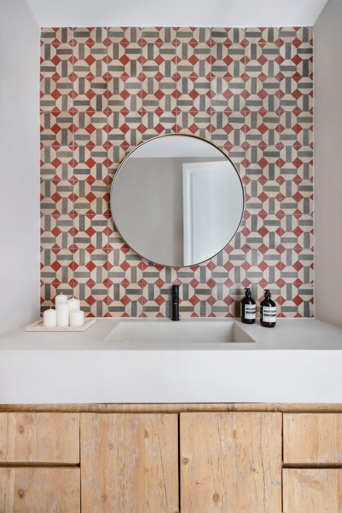 Ao nível dos materiais, foram recuperados os azulejos hidráulicos originais, reutilizando-os no pavimento da cozinha e na parede da casa de banho. Desta forma, mantiveram a memória da casa, que sem dúvida trouxe um toque especial ao projeto.