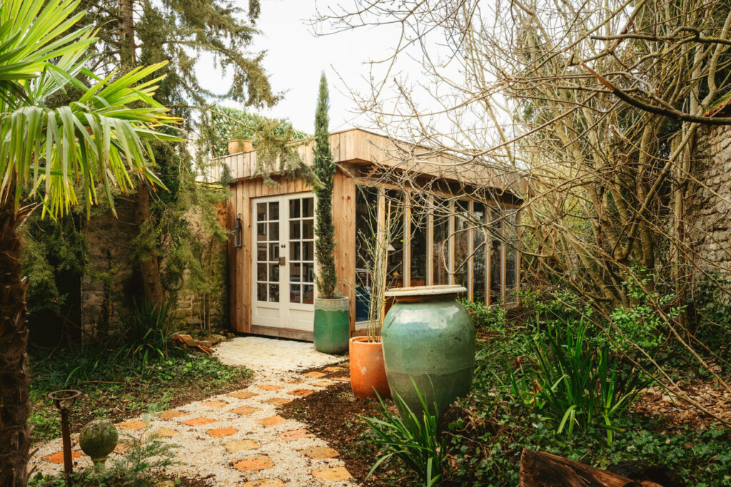 O edifício estava originalmente dividido em dois pisos, separados por um sótão. Metade do piso foi removida para criar um espaço de pé-direito duplo, reutilizando materiais removidos para um projeto anexo: o piso de madeira recuperado e algumas janelas antigas foram utilizados para criar esta oficina de pintura ao estilo de um barracão.