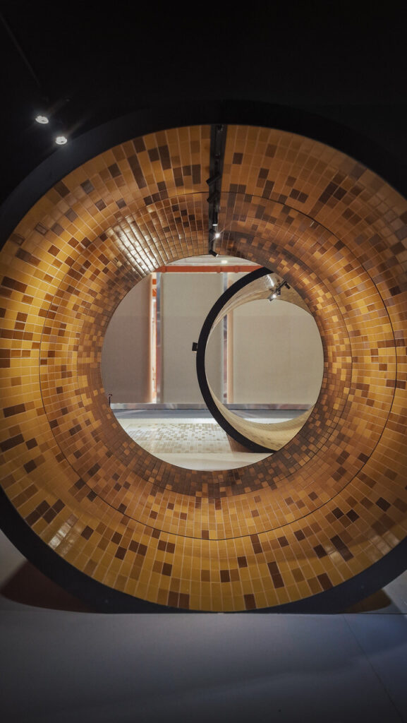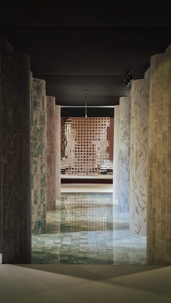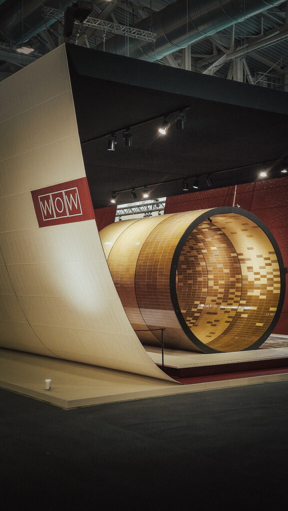 A WOW Design estreou-se no Hall 37, Stand A64-B63, com um espaço que dobrou a dimensão das edições anteriores. Concebido como arquitetura cénica, o stand transforma o visitante em ator de uma experiência teatral, destacando o potencial expressivo da cerâmica através de texturas, reflexos e contrastes de luz e sombra.