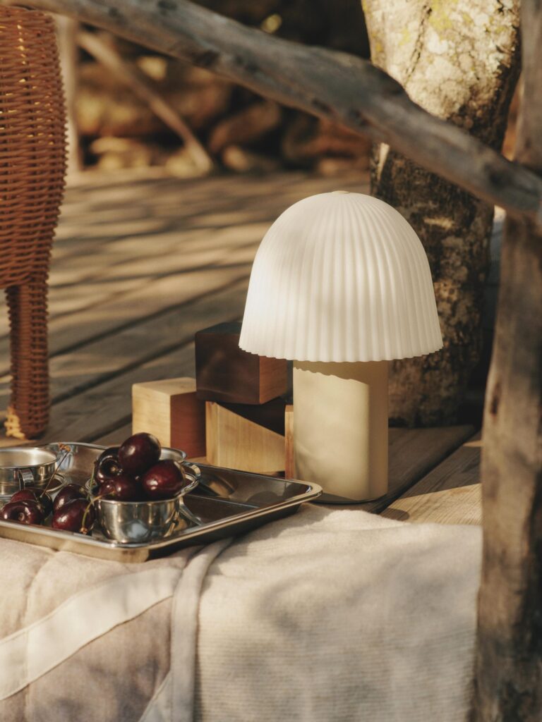 12. Frill, portátil, da Ferm Living, perfeita para o quarto das crianças. A base pesada oferece estabilidade e a cúpula moldada apresenta uma superfície canelada que adiciona profundidade e textura. Na Pura Cal.