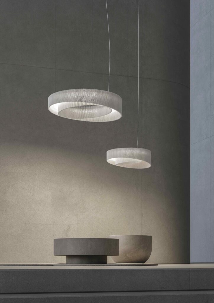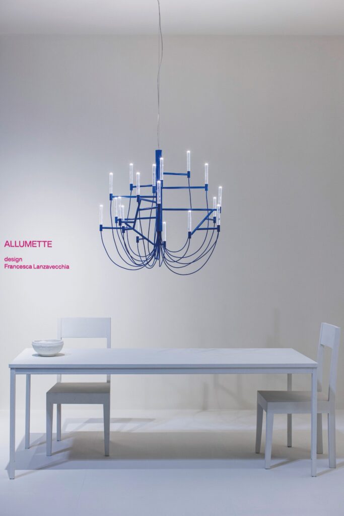 5. Allumette, por Francesca Lanzavecchia para a Foscarini, assimétrico e escultural, o novo lustre brinca com a leveza e a presença, unindo a suavidade dos cabos têxteis à geometria rígida dos braços. Na Paris:Sete.