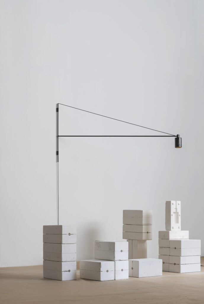 27. Can Wall Structure, do Studio davidpompa. O braço móvel e a cúpula cilíndrica inclinável feita de barro negro de Oaxaca direciona a luz com precisão, ideal para iluminar uma mesa de trabalho, área de jantar ou canto de leitura.