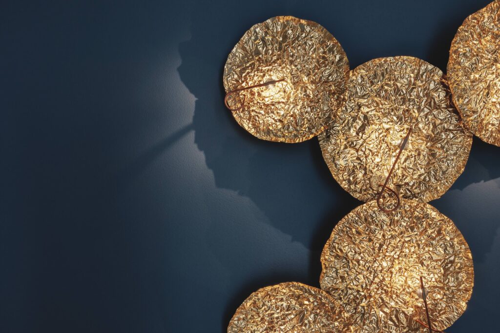 30. Gold Moon, da Catellani & Smith, agora está disponível numa versão de parede, composta por seis discos de superfície irregular — três com 25 cm de diâmetro e três com 30 cm — todos adornados com o característico revestimento em folha dourada. Na Smokesignals.