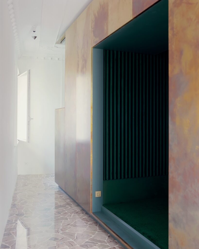 Para a AMAA, a relação com a história é intensa, mas desprovida de peso: baseia-se numa procura incessante por novas oportunidades de projeto e numa desconstrução consciente dos dogmas compositivos. Golden Box é, de facto, uma criação única, realizada com técnicas artesanais e um design totalmente à medida. A sua concretização, marcada por um processo de refinamento contínuo, estendeu-se ao longo de cerca de três anos.