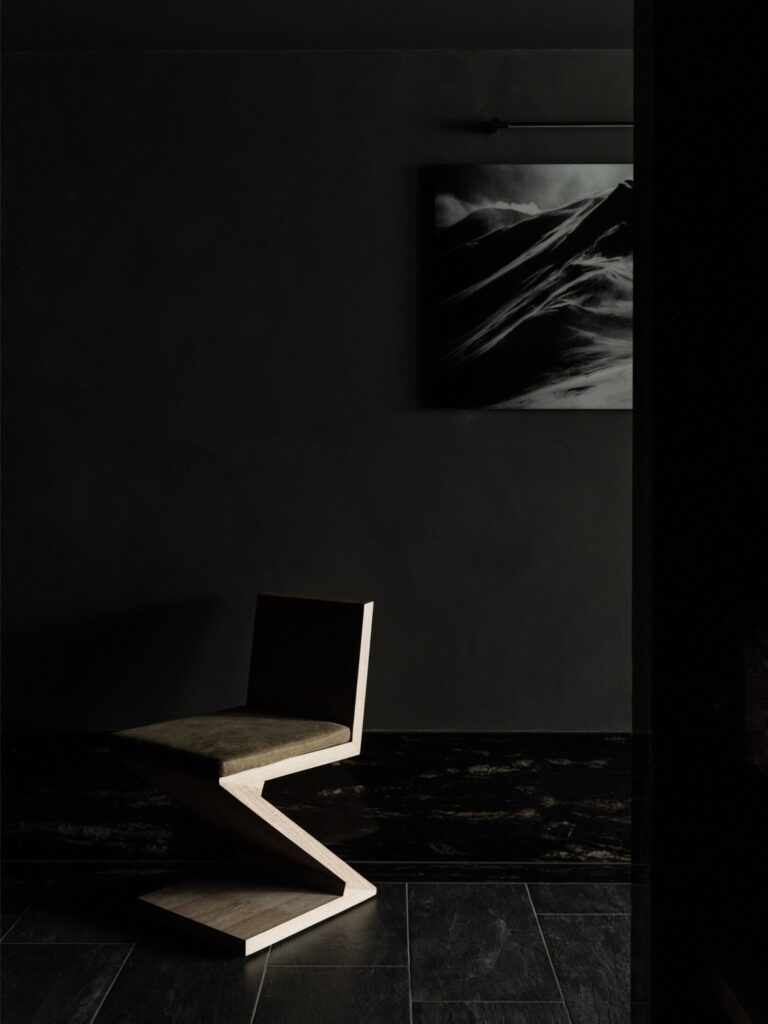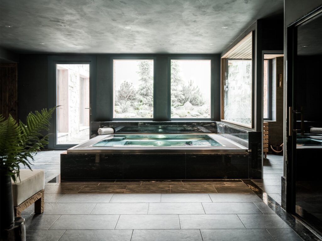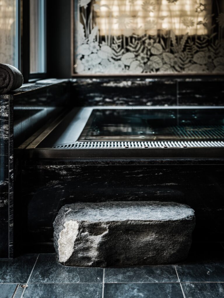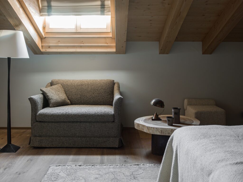 Com 32 quartos, um ginásio e um spa boutique, o hotel dispõe de amplas varandas que oferecem vistas excecionais sobre os Alpes. A beleza da paisagem envolvente inspirou a paleta cromática de tons naturais e terrosos — dos verdes e castanhos aos cremes e ferrugem —, enquanto madeiras locais recuperadas, tintas minerais, lãs suíças e escocesas, bem como linho belga, foram usados em todo o projeto.