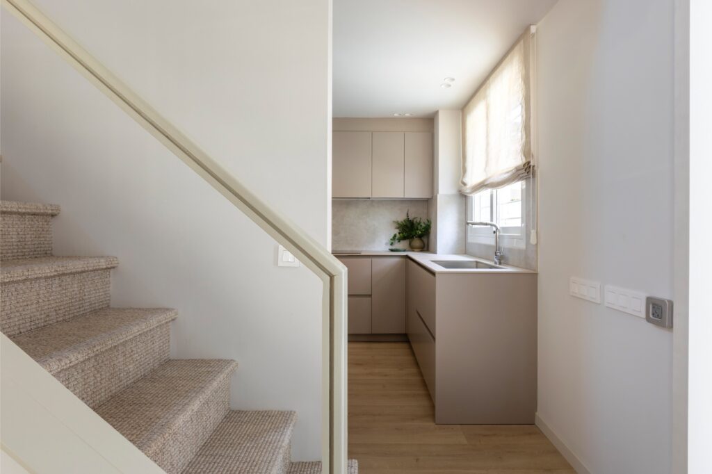 Com uma área de 200 metros quadrados distribuídos por três andares, esta remodelação integral da Trestrazos Interiorismo consegue criar uma casa serena, funcional e luminosa, onde os espaços fluem naturalmente.