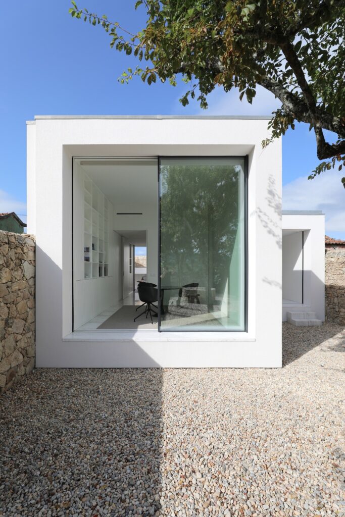 As fotografias de José Campos, mostram os interiores do atelier de arquitetura, que manteve vários elementos da construção antiga como a cobertura em madeira, as paredes em pedra e em tabique, e ainda a ampliação com duas novas salas abertas para o jardim limitado pelos muros de granito típicos da região.