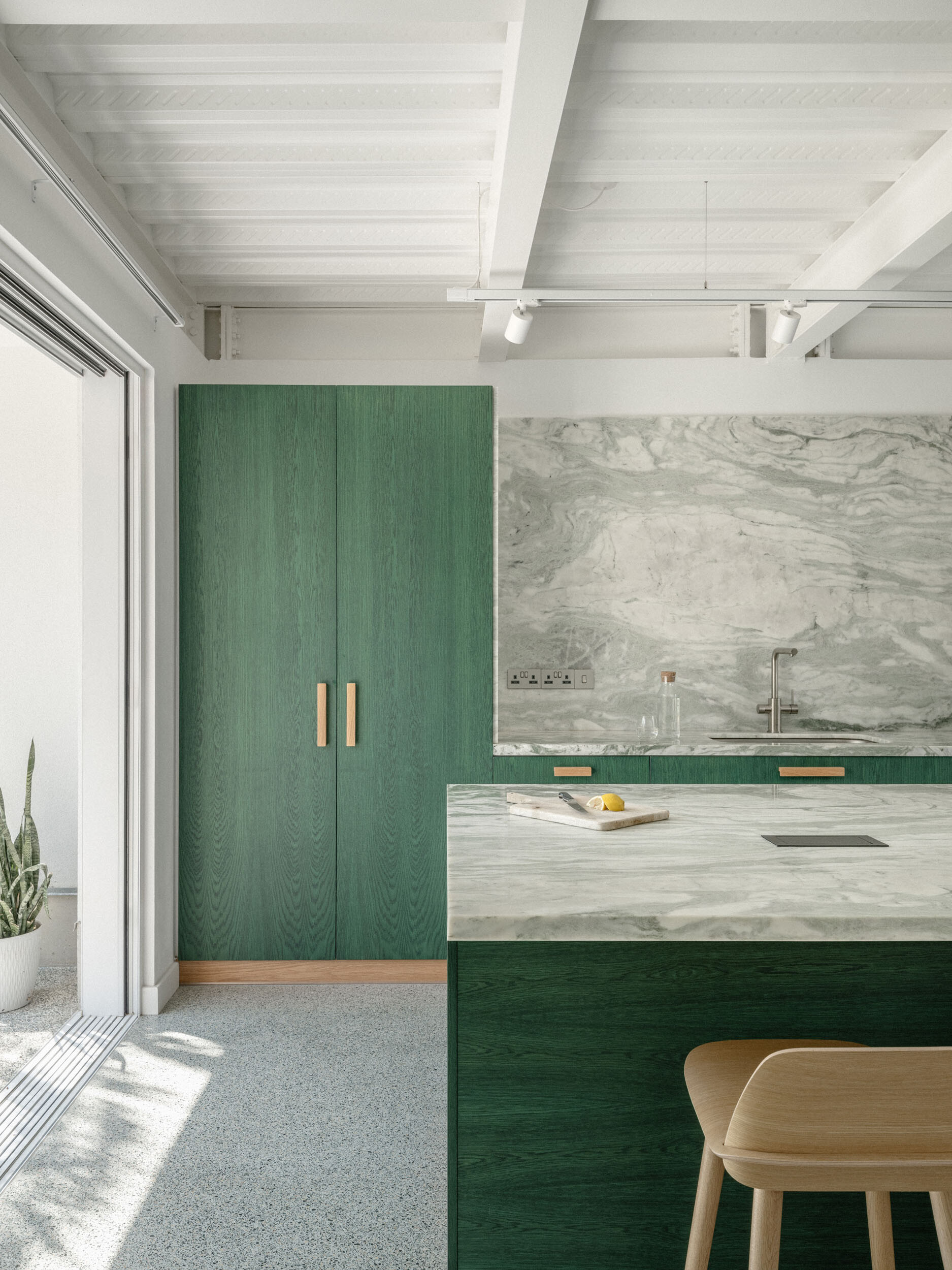 A extensão é construída com uma estrutura de aço, cujas vigas expostas reforçam a sensação de amplitude dos espaços. Para harmonizar o antigo com o contemporâneo, foram incorporados cores e materiais do edifício classificado nos acabamentos da ampliação, incluindo o pavimento em terrazzo, detalhes da escada, elementos das casas de banho e o desenho da cozinha.
