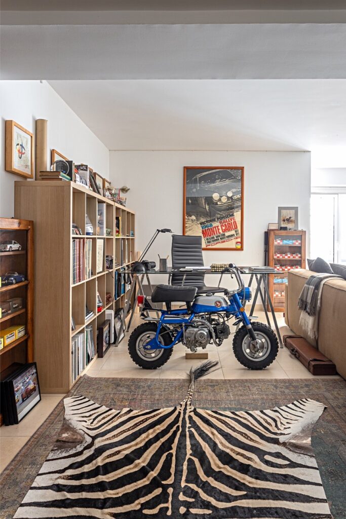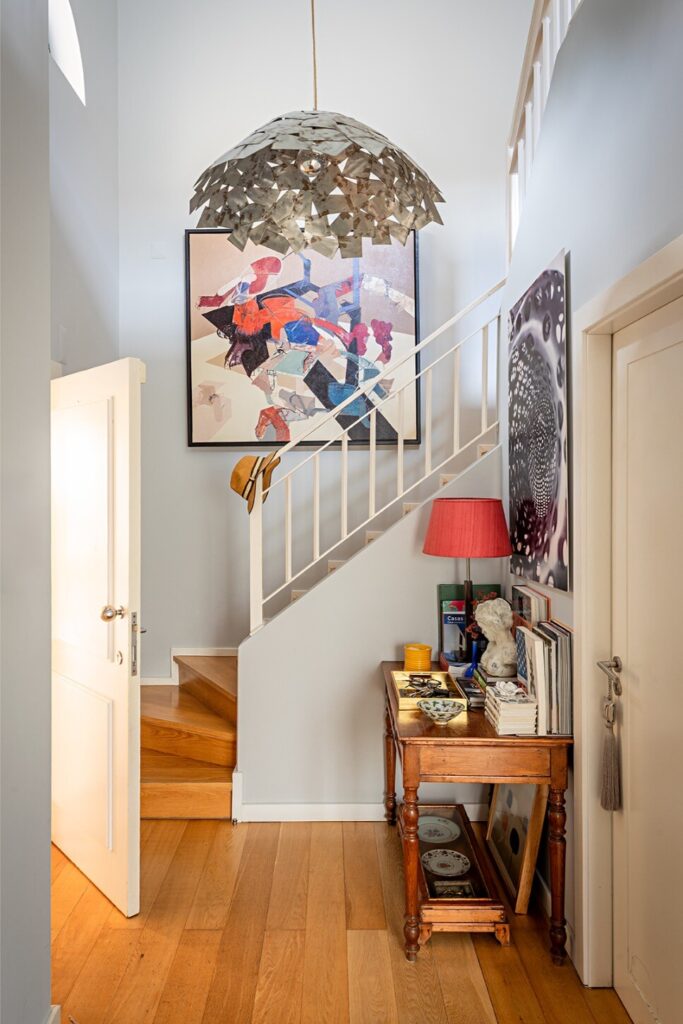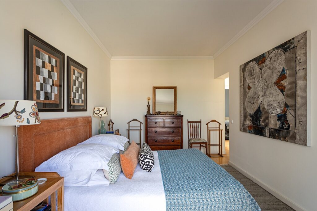 Planeada para um casal do mundo editorial, com filhos já adultos, esta casa é um espaço de memória e refúgio. Aqui, cada peça, uma cadeira herdada, um candeeiro descoberto numa feira em Lisboa ou uma pintura trazida de uma viagem, é relato de uma história, tem um passado, o que lhe confere uma profundidade rara.