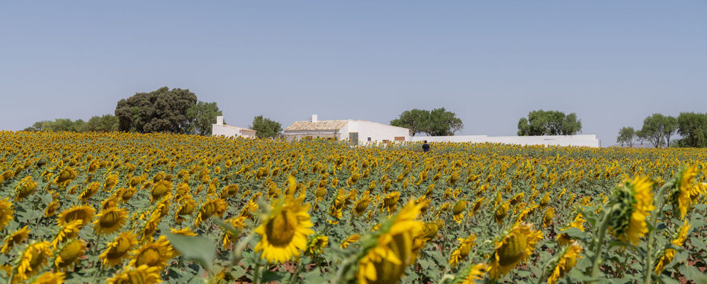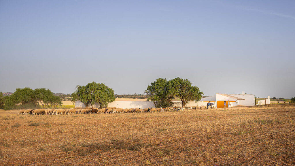 A propriedade é composta sobretudo por campos cultivados, pontuados aqui e ali por árvores isoladas. A norte do local escolhido pelo proprietário para edificar a sua casa, e paralelamente ao caminho de acesso, existe uma fiada de amendoeiras.