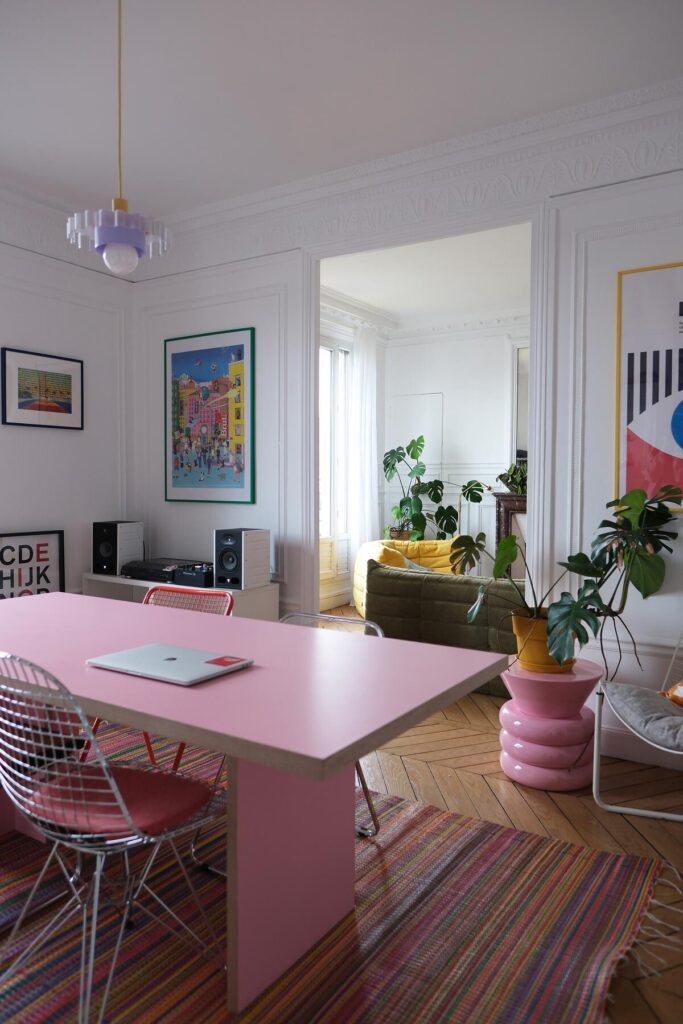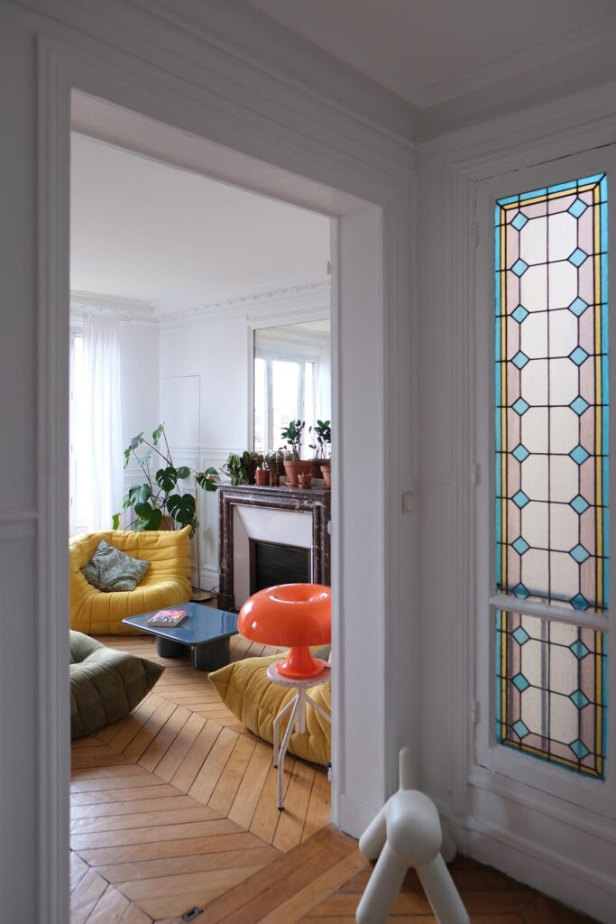 Um apartamento parisiense de património haussmanniano renasce com cores vibrantes, design icónico e um espírito lúdico que transforma a arquitetura clássica numa visão fresca e intemporal do chique urbano.