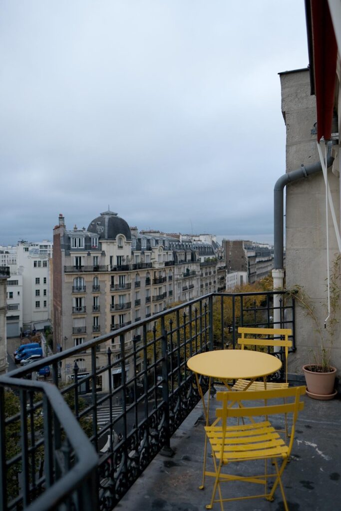 Algumas peças emblemáticas marcam a identidade do apartamento: um conjunto de sofás Togo da Ligne Roset convida ao descanso, acompanhado por cadeiras de design cuidadosamente selecionadas, como a cadeira Plia do designer Giancarlo Piretti, ou ainda Eames ou Breuer e algumas peças de coleção da agência SANAA. Este diálogo entre design icónico e arquitetura patrimonial cria um universo singular, ao mesmo tempo acolhedor e profundamente enraizado na sua época.
