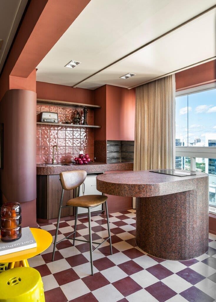 As cores talvez não sejam consensuais: um vermelho que envolve grande parte dos ambientes, pontuado por tons de verde que contrastam e conferem um tom retro. A irreverência é assinada por Ricardo Abreu e as fotografias são de Renato Navarro. Veja mais aqui.