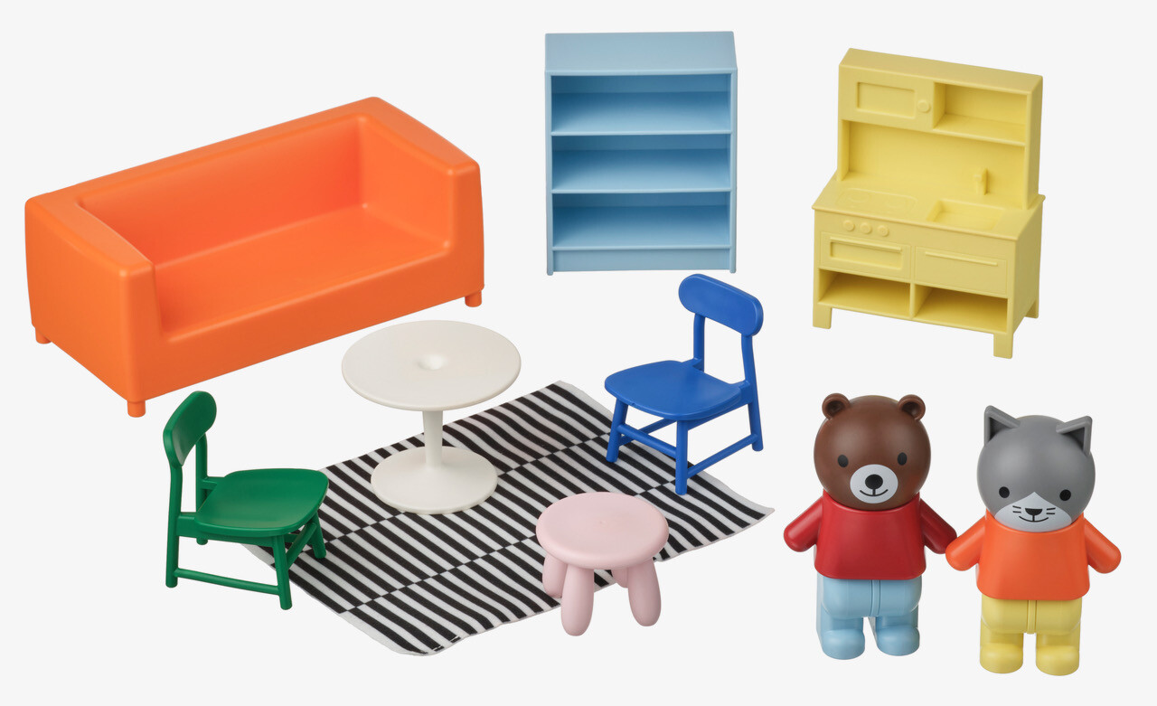 Entre as peças que compõem esta nova coleção estão o sofá KLIPPAN, a estante BILLY, o conjunto MAMMUT e a cozinha DUKTIG, todos perfeitos para a casa de bonecas FLISAT. Além dos móveis, a linha inclui bonecos coloridos e figuras de animais, ideais para dar vida às histórias que as crianças inventam durante as brincadeiras.