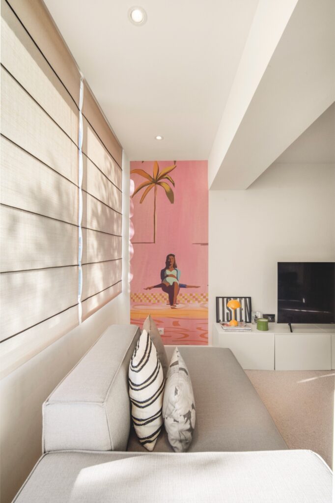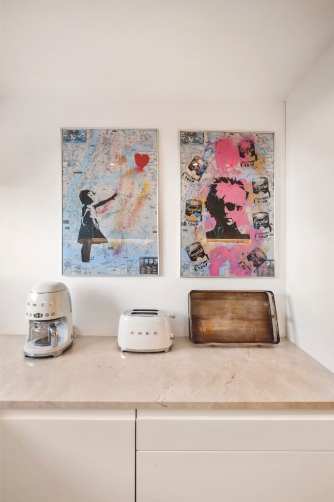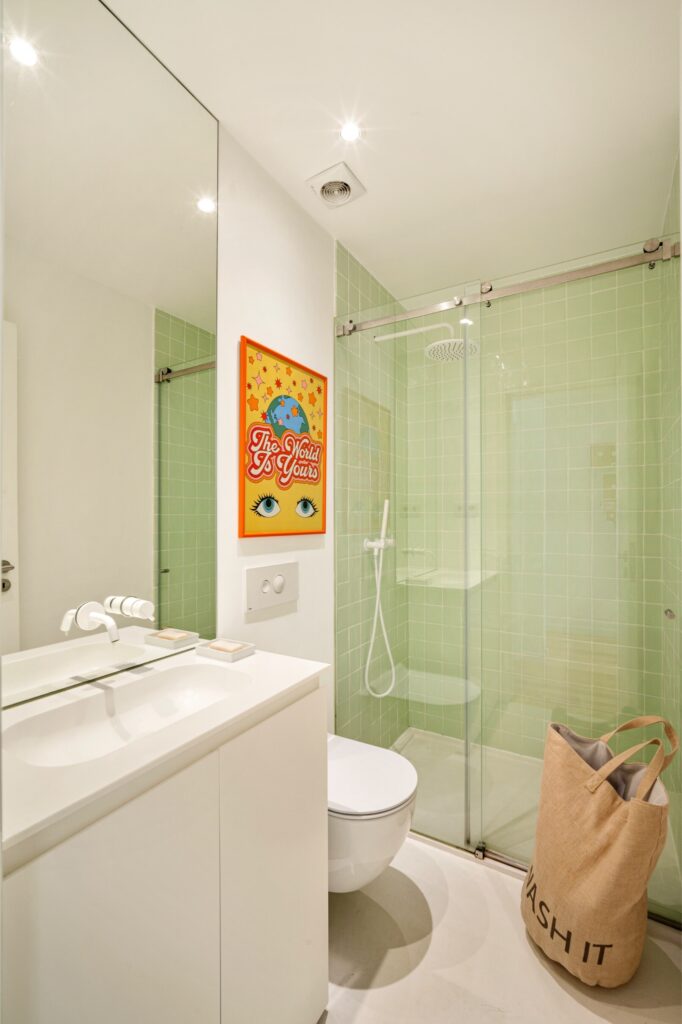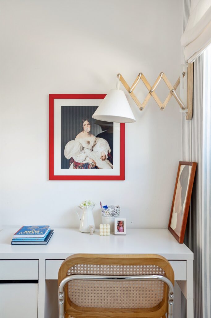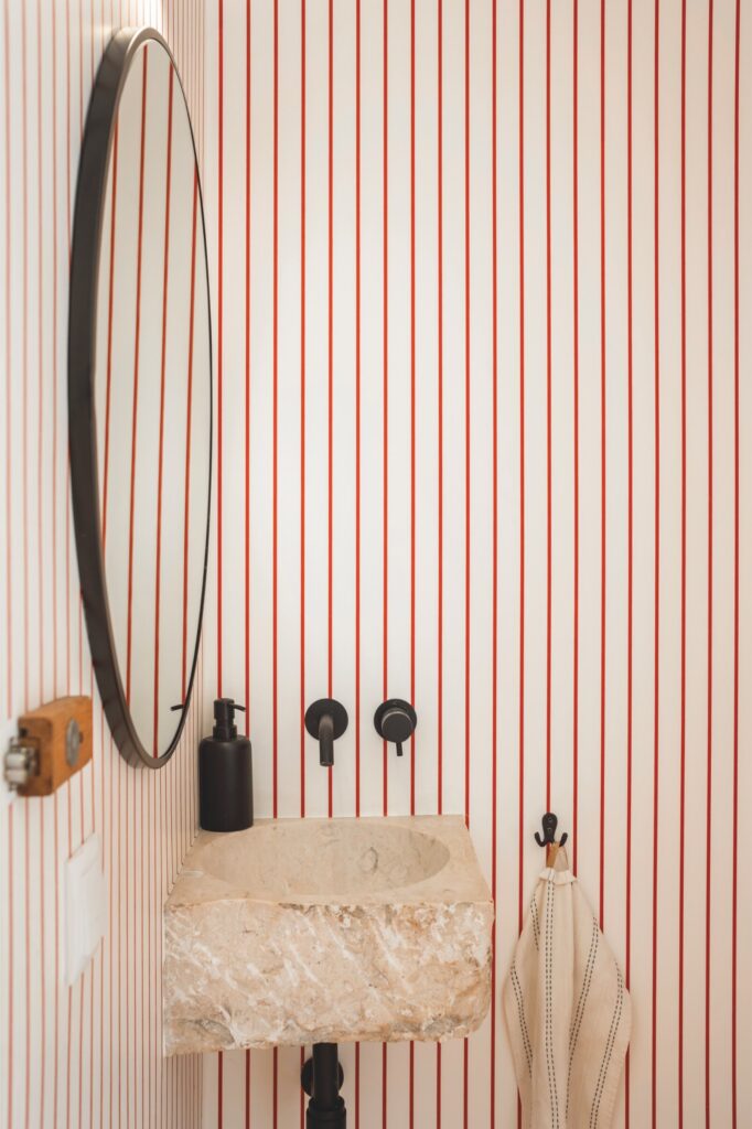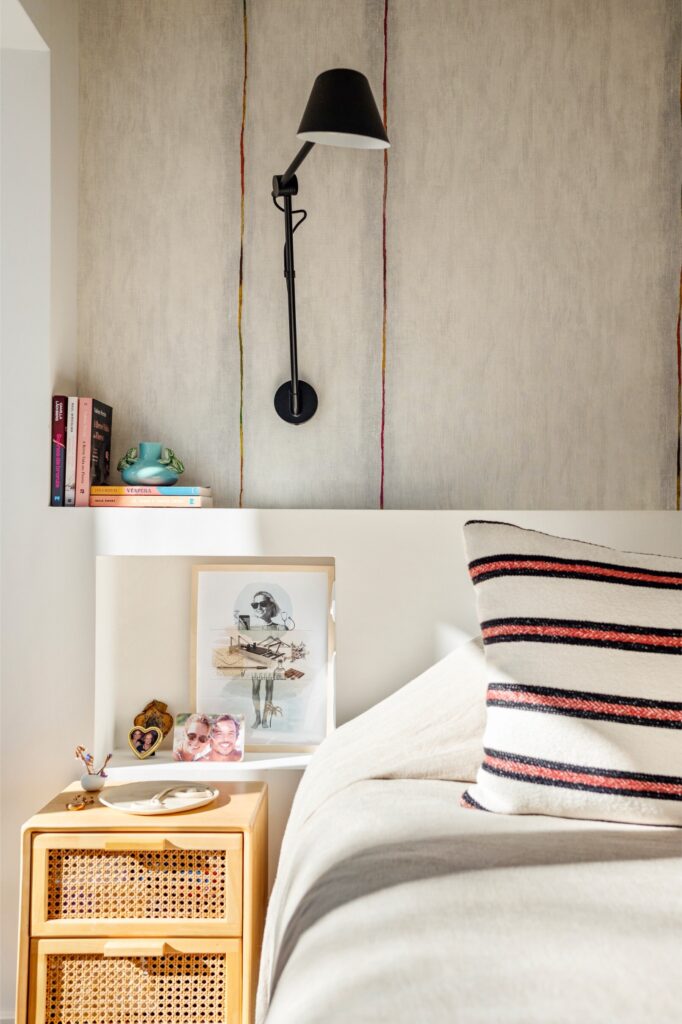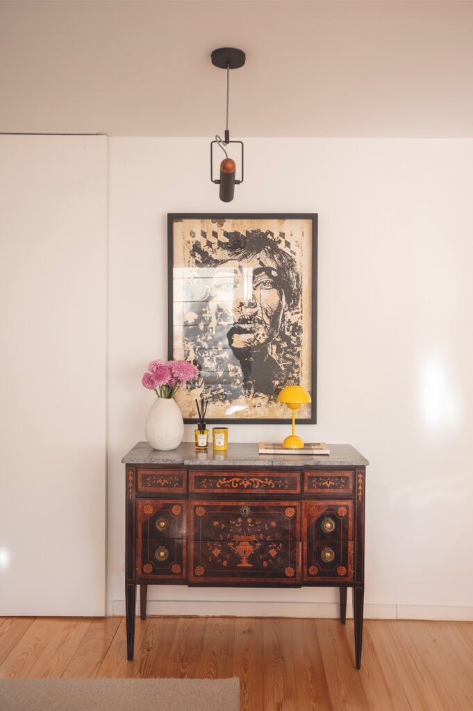 “A casa de Inês e do Frederico é um projeto particularmente especial. Inês é uma amiga de longa data e confiou-me a transformação integral do seu espaço”, conta-nos Luísa. “Deu-me liberdade total na escolha dos materiais, do mobiliário e de toda a decoração”. A intervenção, meticulosa, implicou a remodelação integral da arquitetura dos interiores, “das casas de banho à cozinha, dos pavimentos à estrutura”, e devolveu ao edifício dos anos 60 a sua alma original, reinterpretada num registo contemporâneo e leve, “à imagem do casal”.