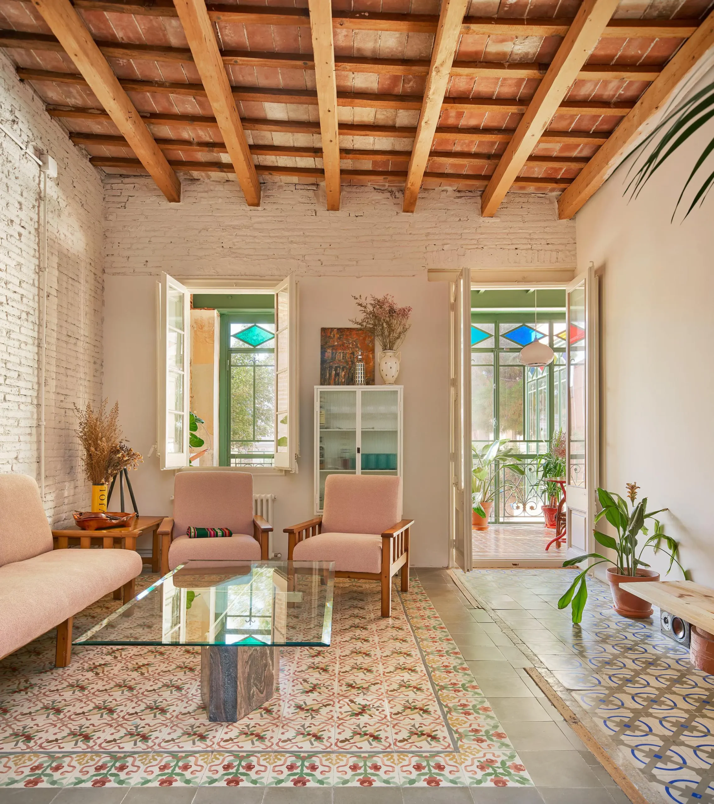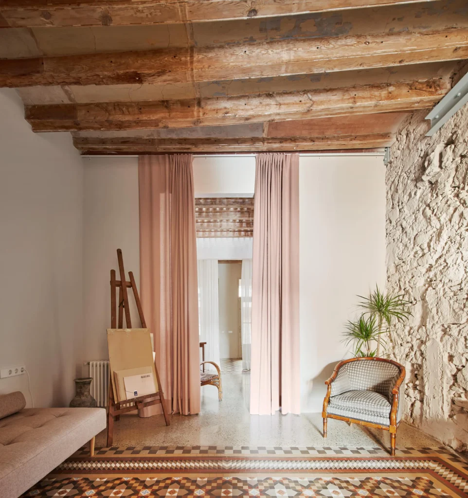 Isso sim, cada uma com uma idiossincrasia própria, que provém das texturas, das cores, da luz e dos diferentes testemunhos que fomos encontrando sob os distintos estratos históricos da casa e que convivem harmonicamente com os novos habitantes.