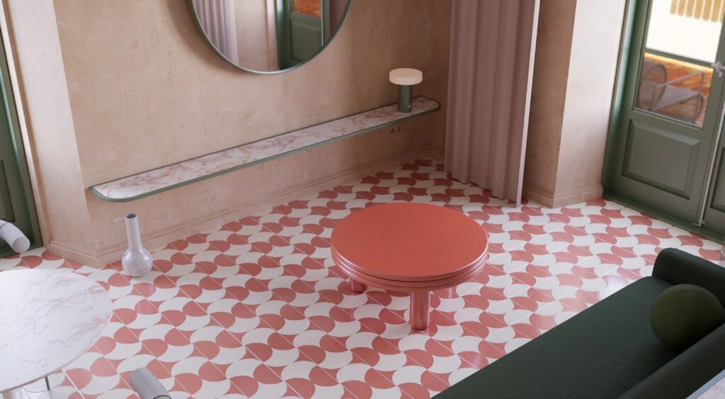 Este recurso garante versatilidade e maximiza a entrada de luz natural, criando um ambiente acolhedor e luminoso que realça os tons terra e verdes, tão característicos da cidade andaluza. A luz natural intensifica a sensação de amplitude e a ligação com o exterior. A opção de dividir o espaço com cortinas, em vez de o compartimentar em diferentes divisões, reforça a ideia de um espaço fluido e dinâmico que pode transformar-se facilmente conforme as necessidades do momento. Esta abordagem é funcional e ajuda a manter uma estética limpa e minimalista, em linha com os acabamentos em argamassa de cal e com a presença de elementos cerâmicos inspirados na tradição trianera.