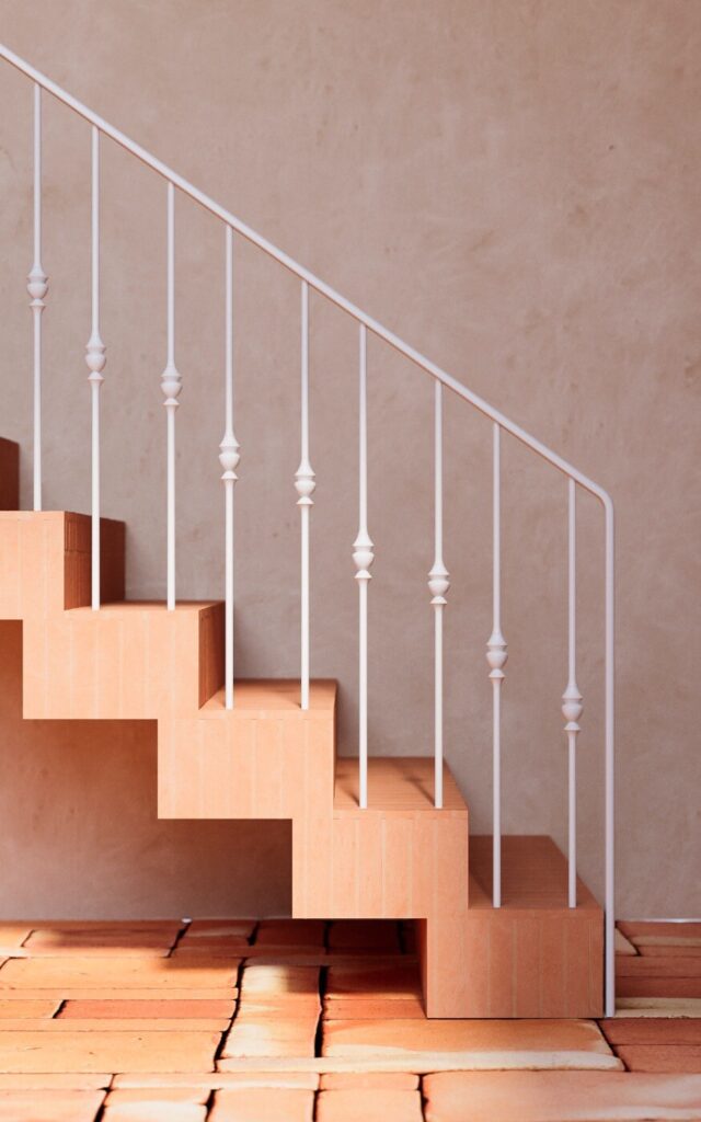 Para as paredes foi utilizada argamassa de cal, um material tradicional na arquitetura andaluza que evoca as antigas técnicas construtivas da região.