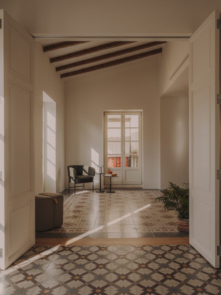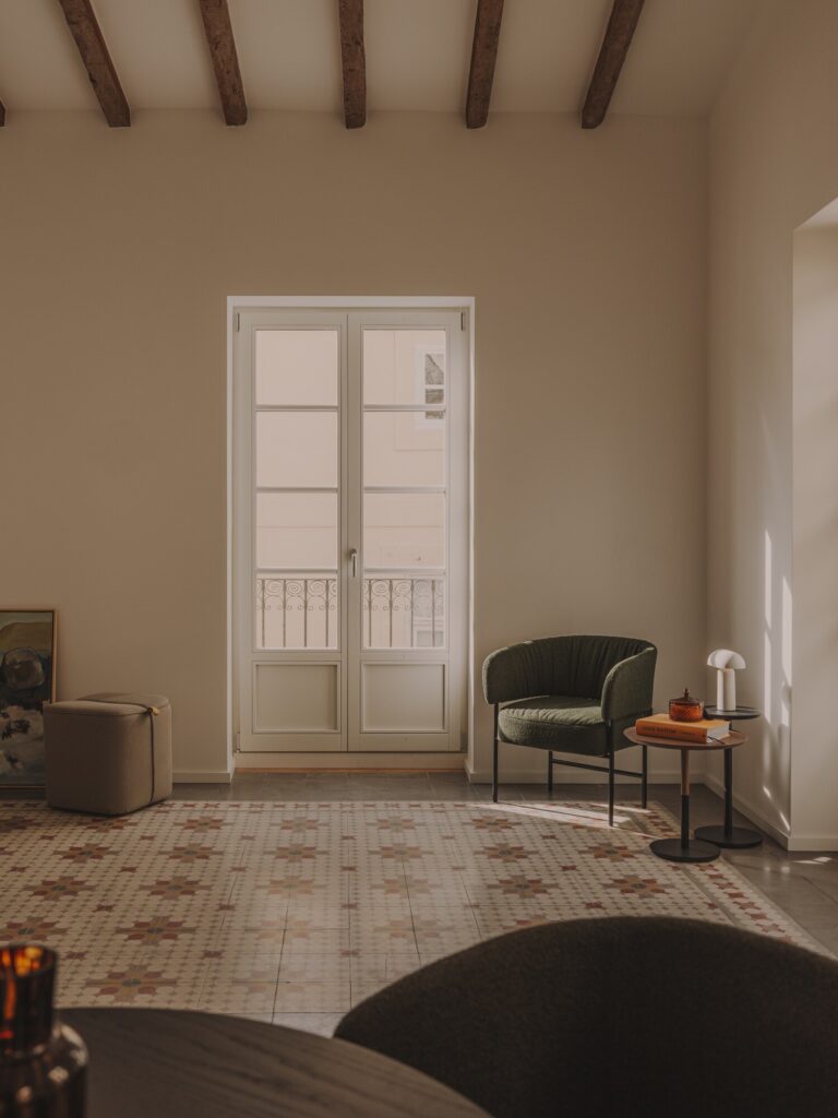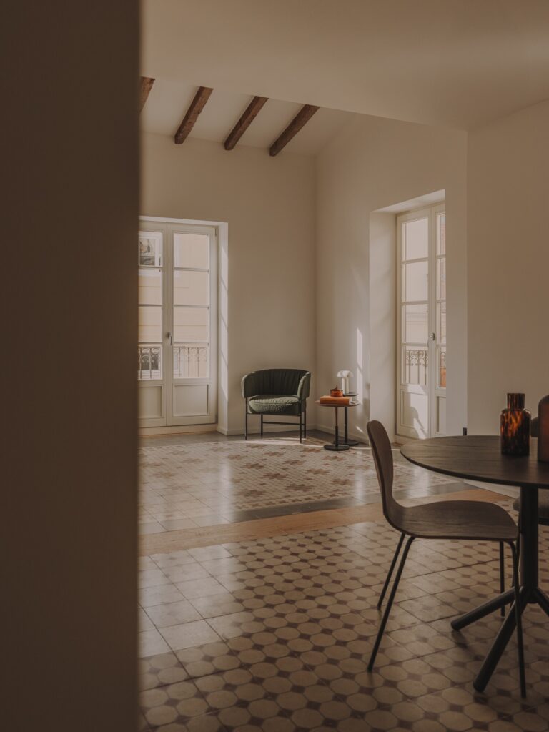 No coração de Valência, um apartamento do século XIX é reabilitado com sensibilidade, preservando a sua identidade original enquanto articula espaços contemporâneos através da luz, da altura e da continuidade dos materiais.