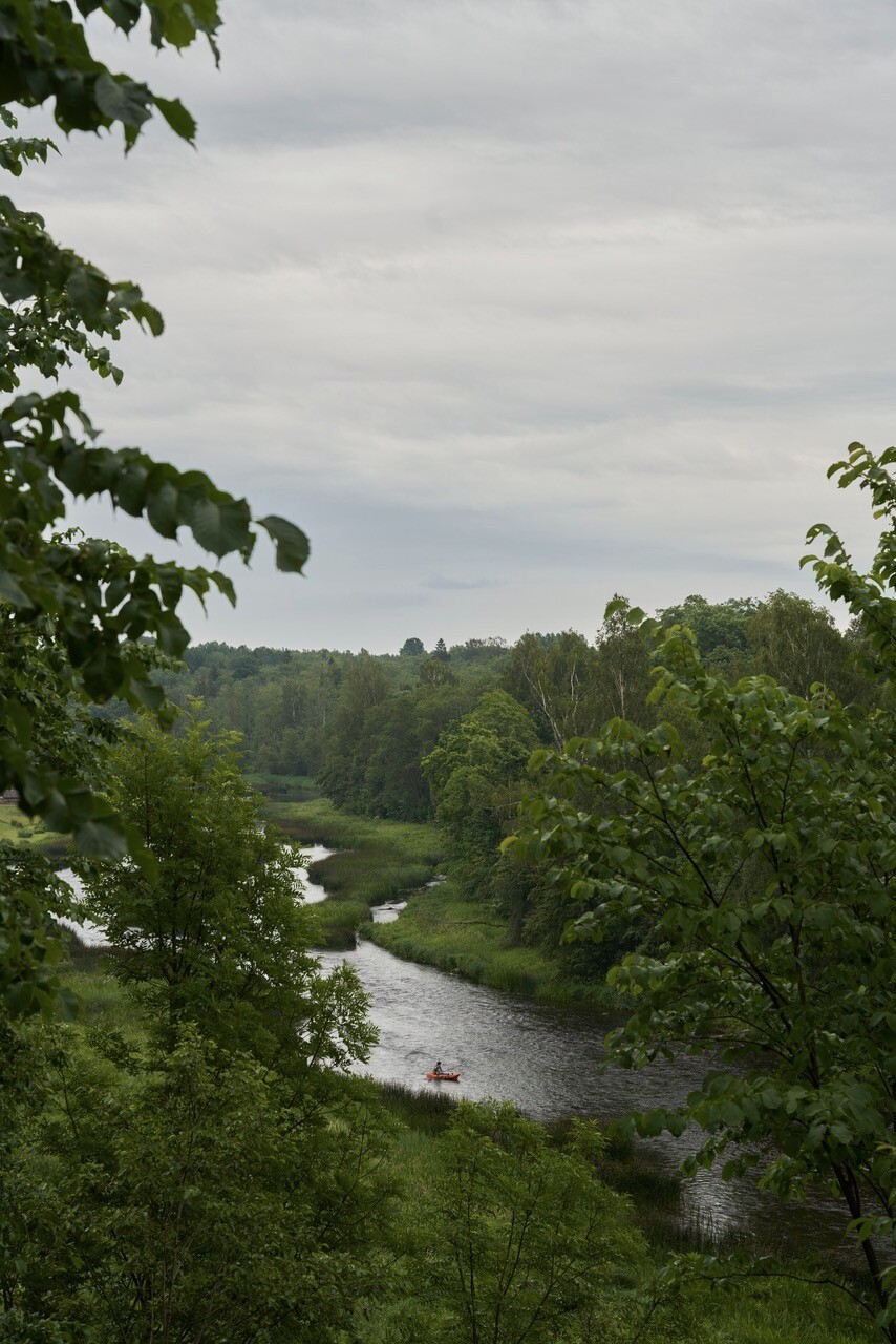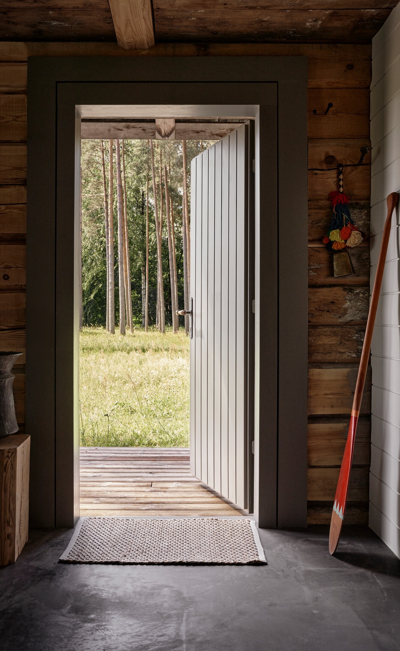 Originalmente utilizada como estalagem de estrada entre Riga e Wolmar, a casa classificada foi desmontada e posteriormente relocalizada na margem do Rio Salaca, onde renasce como um refúgio de design escandinavo integrado à floresta.
