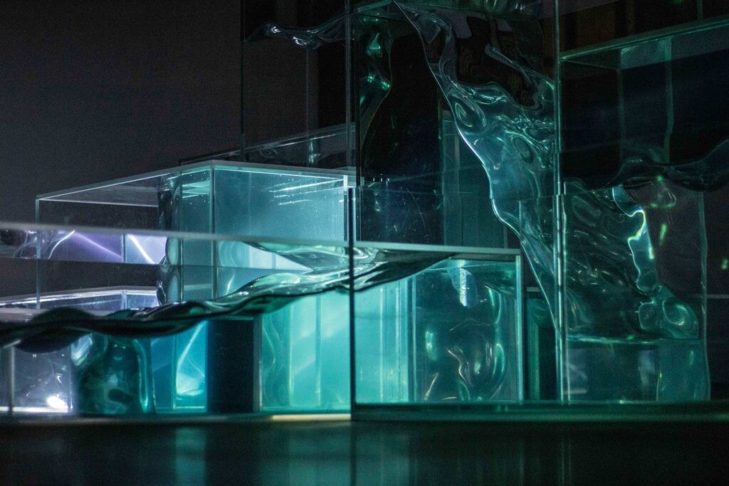 Composing Oceans é uma instalação da artista holandesa Ellis Holman, na qual o oceano é recomposto como uma paisagem surreal, explorando tensão, luz e gravidade. A instalação simboliza a relação complexa entre passado e futuro, flutuando entre dois extremos.