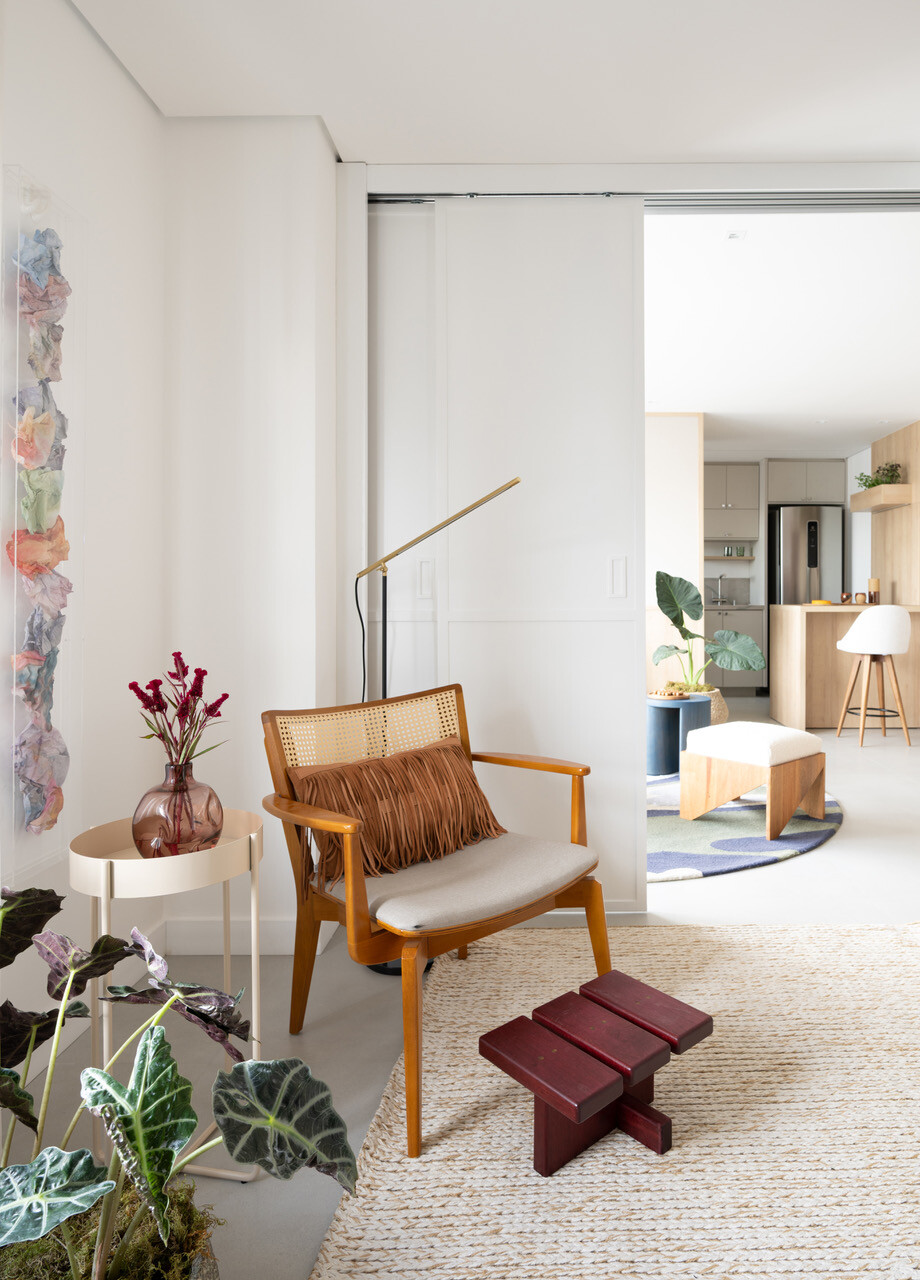 O apartamento de 93 m², no Jardim Paulista, em São Paulo, foi remodelado pela arquiteta Vivi Cirello. Para além de ser a casa da família, o espaço acolhe o escritório em casa da moradora e apresenta soluções inovadoras para separar as diferentes funções.