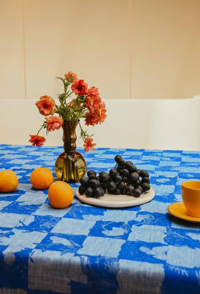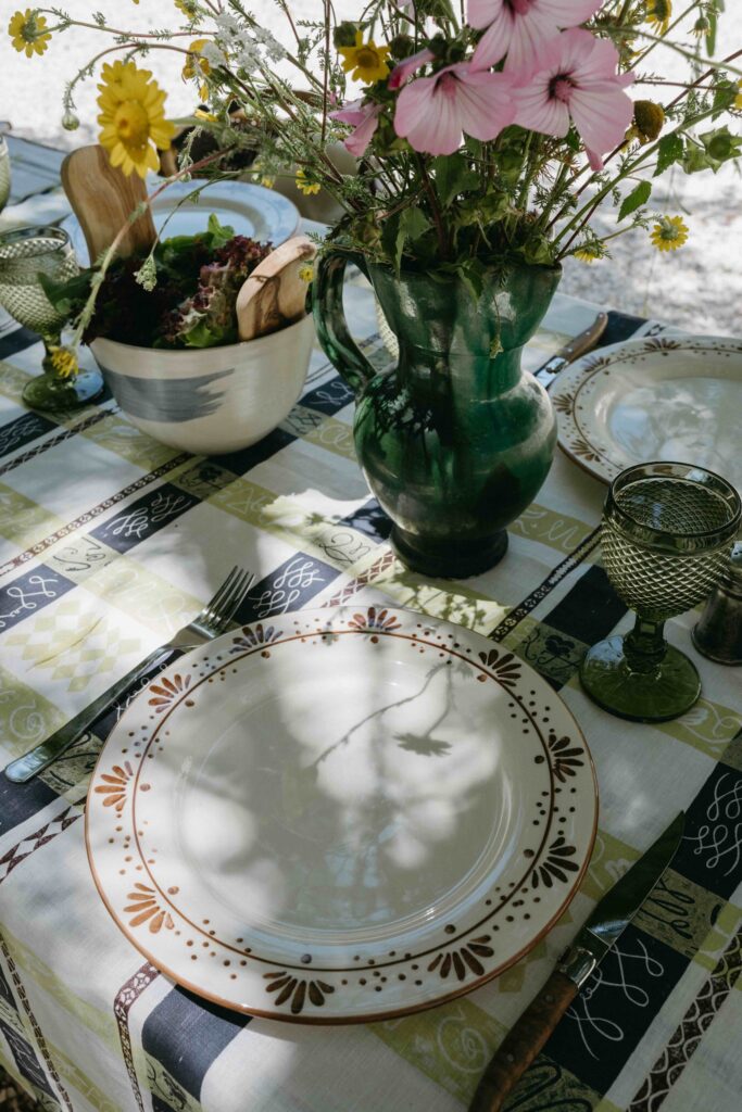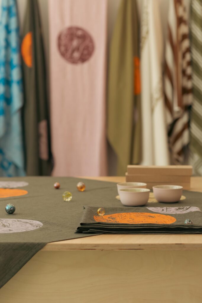 Sob o mote “Sentimental Textiles”, cada peça nasce de um gesto desenhado à mão e de uma narrativa pessoal. Riscas, bolas e xadrezes reinventam-se em padrões que evocam memórias, emoções e momentos. O resultado são tecidos poéticos, usados em toalhas, almofadas, painéis decorativos e projetos personalizados.