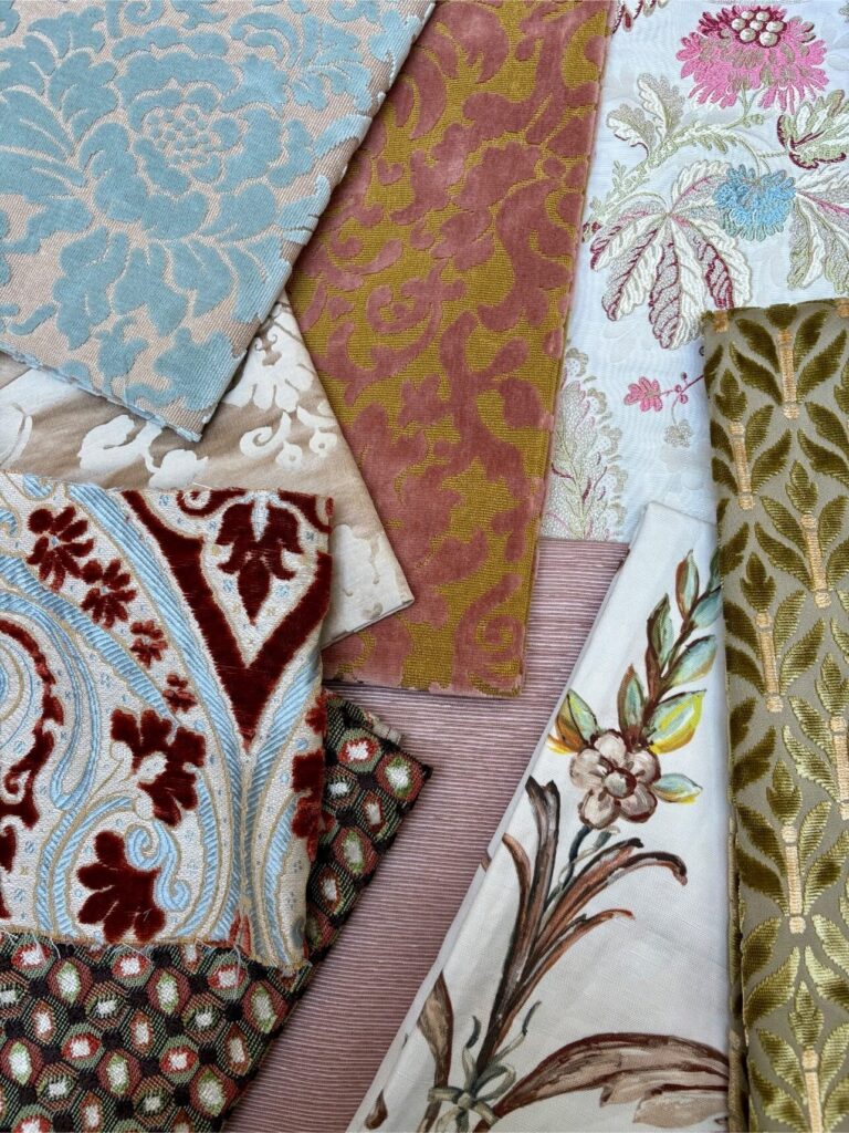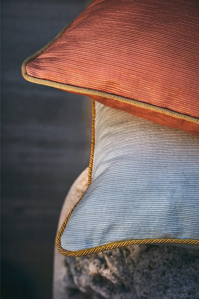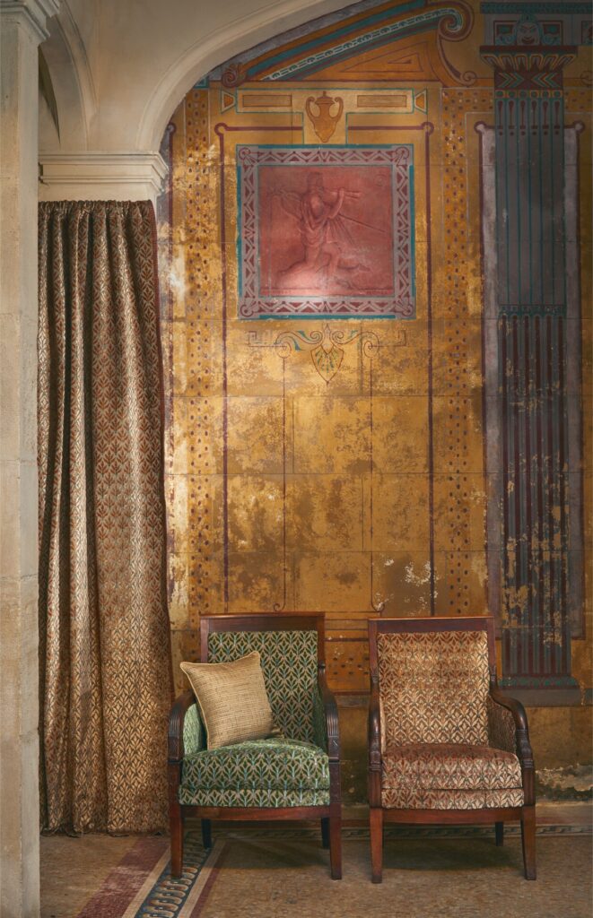 Com a Via Antica, a Fadini Borghi revela uma nova colecção de tecidos que prolonga de forma natural a sua longa devoção aos têxteis preciosos e a uma cultura decorativa profundamente enraizada na história italiana. As inspirações partem do universo pompeiano, evocando frescos antigos, jardins estilizados e paisagens moldadas pela presença silenciosa do Monte Vesúvio. Esta memória visual atravessa toda a colecção, perceptível tanto nos desenhos como na rigorosa selecção de materiais.