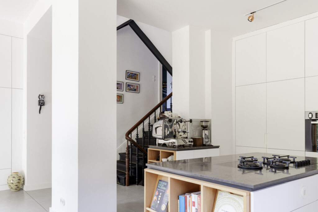 A família desejava, por um lado, preservar o charme da villa berlinense antiga, com os seus pavimentos em madeira, espaços e portas de pé-direito altos; por outro, pretendia também um espaço moderno e luminoso para cozinhar e comer em conjunto, refere Marc Hensel, a propósito desta remodelação e renovação profundas.