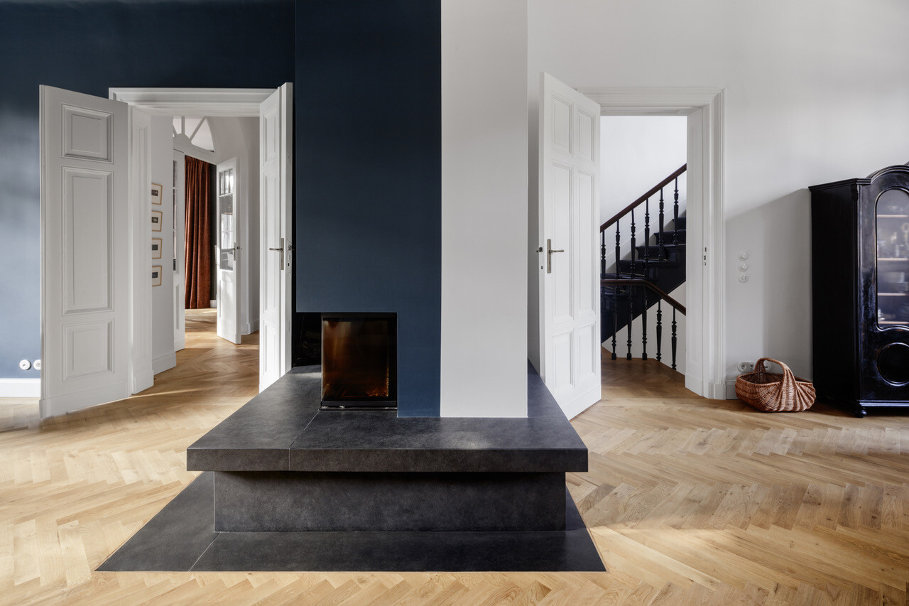 A família desejava, por um lado, preservar o charme da villa berlinense antiga, com os seus pavimentos em madeira, espaços e portas de pé-direito altos; por outro, pretendia também um espaço moderno e luminoso para cozinhar e comer em conjunto, refere Marc Hensel, a propósito desta remodelação e renovação profundas.