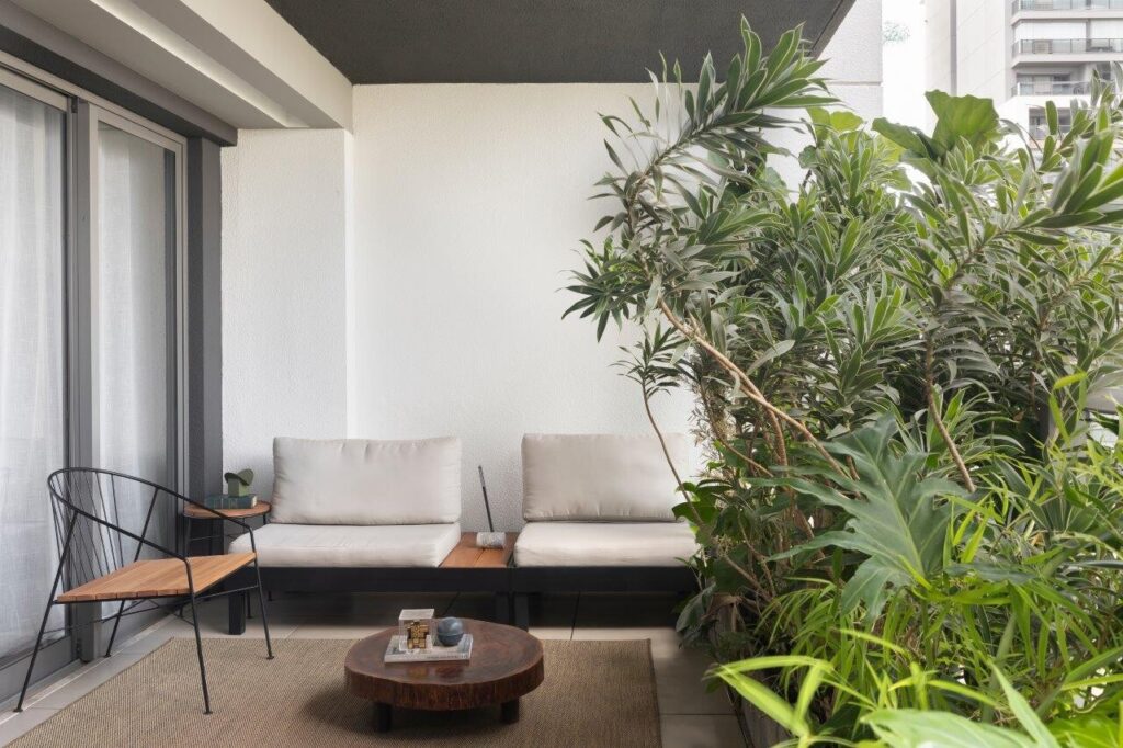 A área social, com 26 m², é o coração da casa: um espaço fluido, versátil e preparado para receber visitas, mas também para momentos de descanso. A cozinha (8 m²) dialoga com a zona social de forma prática e eficiente, enquanto a suíte (15 m²) oferece conforto e privacidade. O terraço, generoso com 16 m², surge como uma extensão natural do interior, onde a vegetação desempenha um papel essencial na criação de um refúgio mais íntimo, suavizando a presença da paisagem urbana.