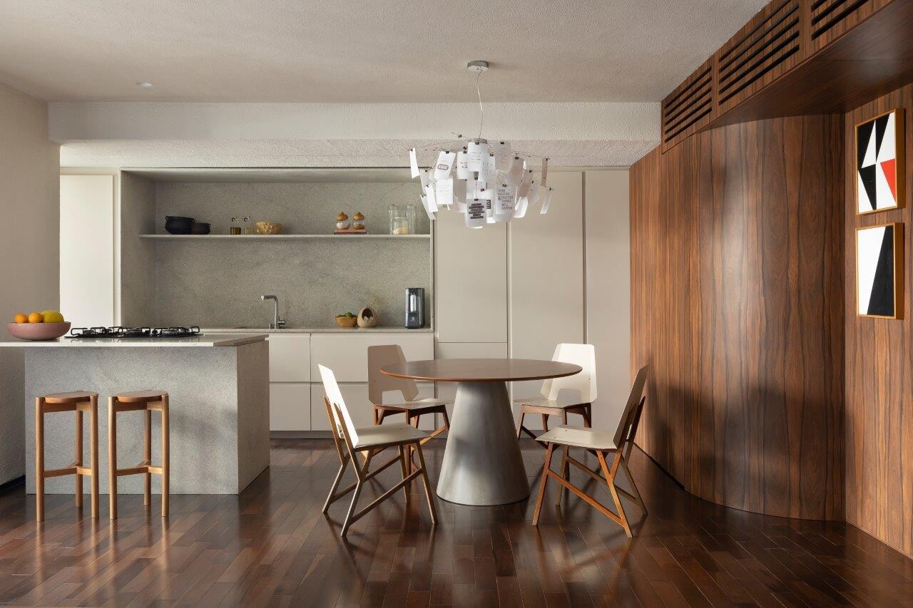 Com 86 m², este apartamento no bairro do Brooklin, em São Paulo, foi transformado numa residência de apoio pensada para um proprietário jovem, solteiro e com uma rotina urbana dinâmica. Concluído em janeiro de 2024, o projecto assinado por José Navarro e Ana Carolina Walker aposta numa linguagem contemporânea, funcional e acolhedora, onde a flexibilidade do layout se assume como fio condutor.