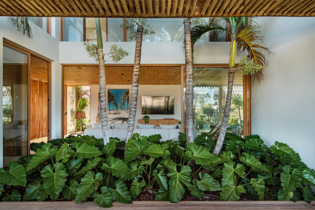 O resultado é a Casa Rendada, uma expressão marcante do uso criativo do cobogó (um tipo de estrutura de madeira), que não só promove a ventilação cruzada natural, como também suaviza a entrada de luz, conferindo à casa uma identidade única.